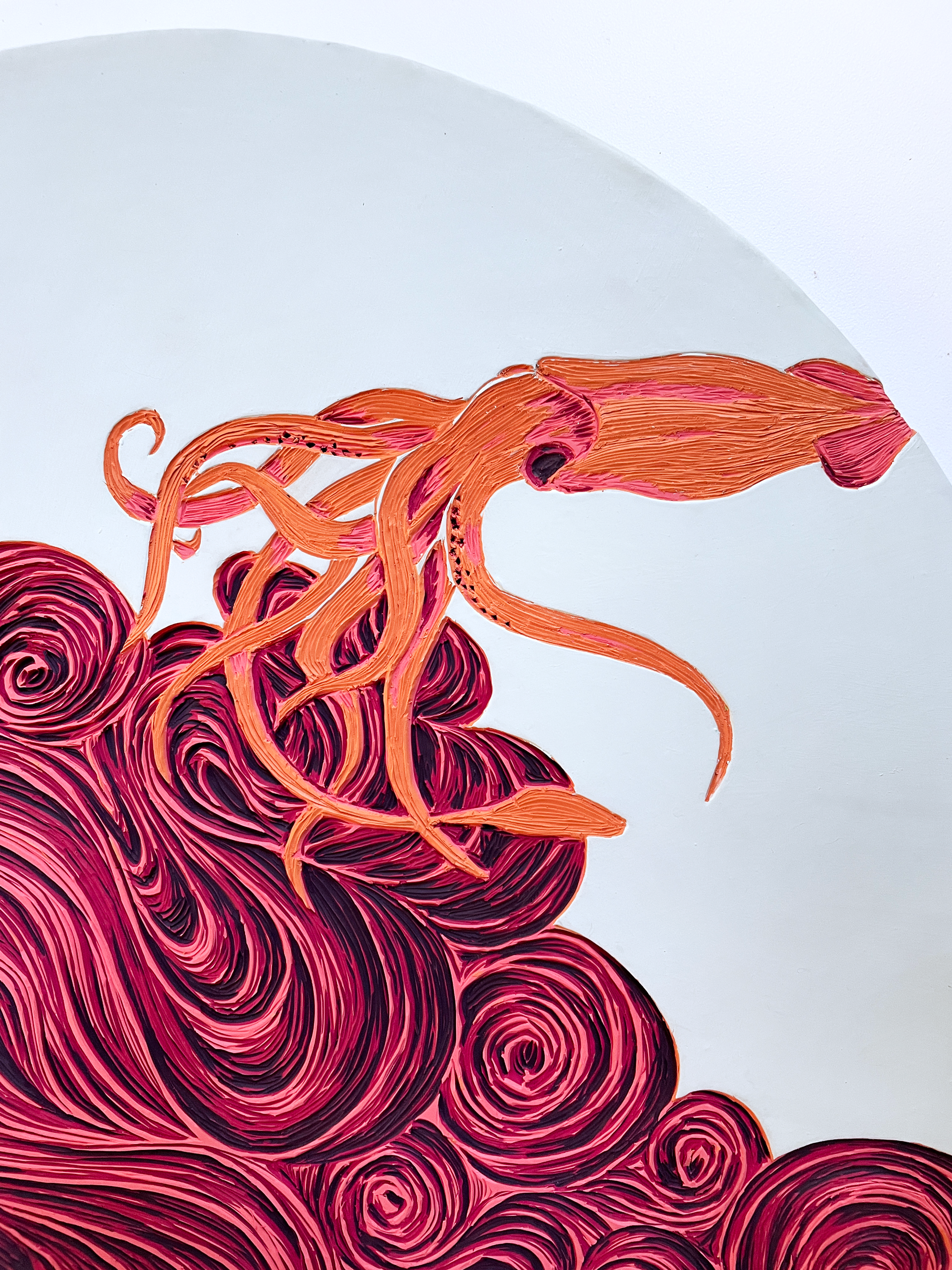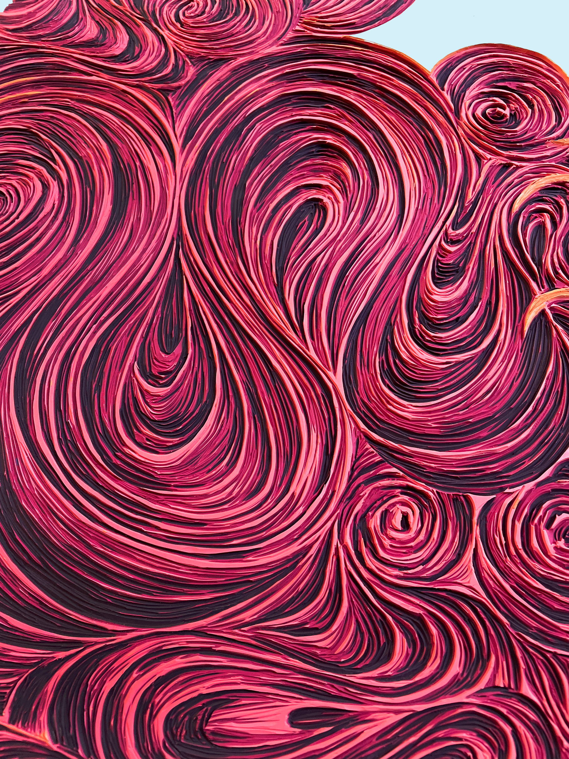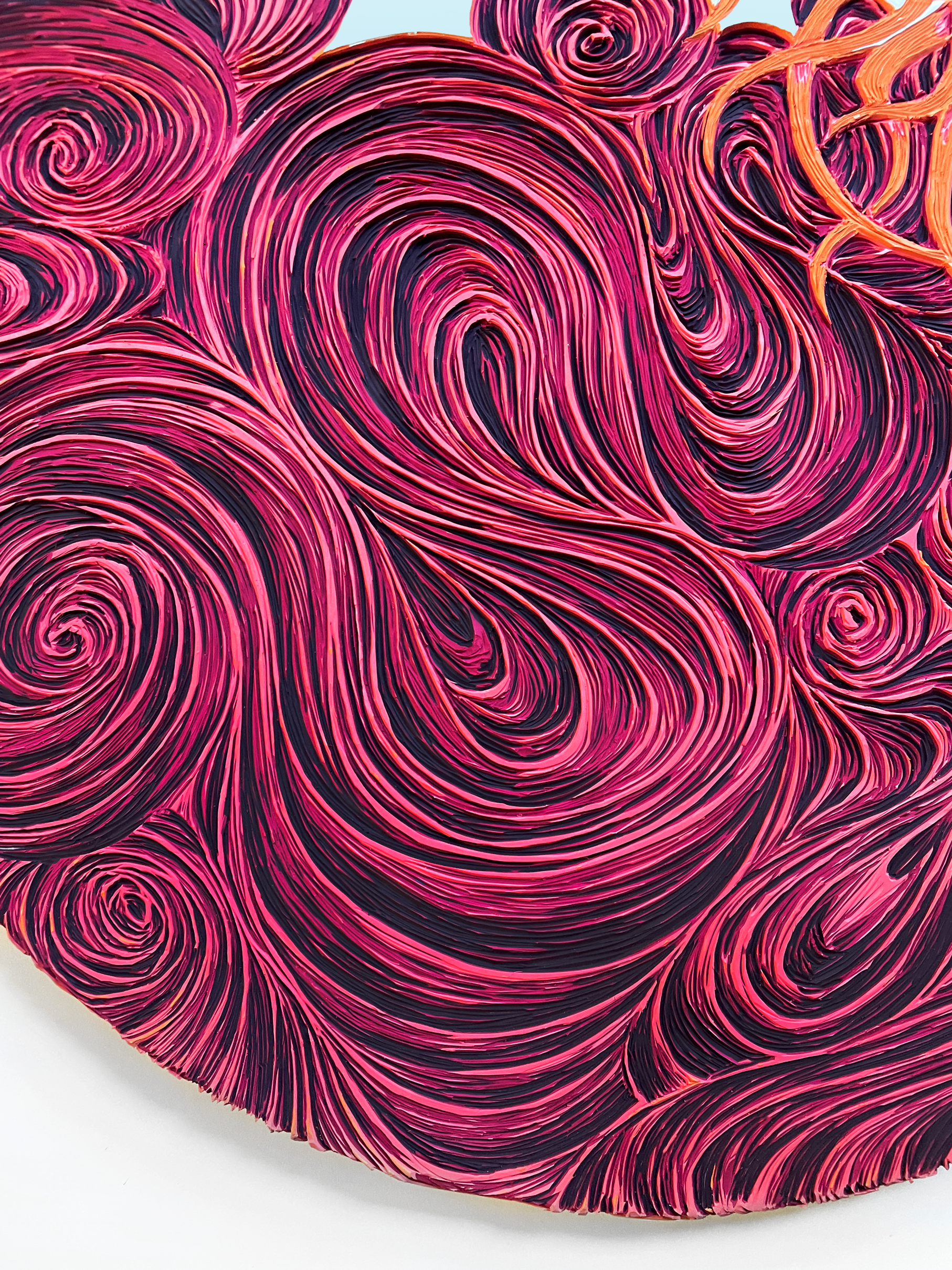 View fullsize Inked 2025 78 Layers of carved acrylic5 Colors | 16” dia wood boardSOLD View fullsize View fullsize View fullsize View fullsize